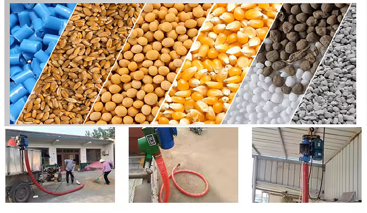 車載式100毫米柔性螺旋輸送機:可直接掛在三輪車或或貨車的車廂壁上,可彎曲移動。特別適用于大型糧倉的轉運、輸送、翻轉和堆垛,以及農場、糧食加工、啤酒釀造等行業的散裝物料運輸。
