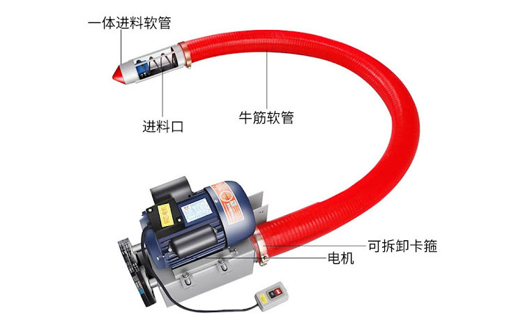 手持式100毫米柔性螺旋輸送機:單手就能靈動的機器,重量輕、體積小、工作時的推力小,可以手動操作,降低工作強度。