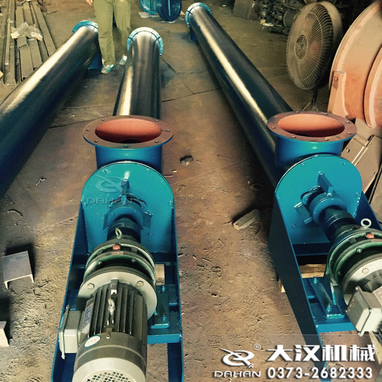 螺旋輸送機螺旋面的形式有實體螺旋(S制法)和帶式螺旋(D制法)兩種。各螺旋軸之間采用法蘭式聯(lián)接, 保證了聯(lián)接軸的互換性,便于維修。 螺旋輸送機機蓋為瓦片式并用蓋扣夾緊在機殼上,若需改進(jìn)密封性能,用戶可自行在機蓋與機殼間加防水粗帆布。 螺旋輸送機進(jìn)、出料裝置有進(jìn)料口,方型出料口,手推式出料口,齒條式出料口四種,由用戶在使用現(xiàn)場在機體上開口焊接。布置螺旋輸送機進(jìn)、出料口位置時應(yīng)注意保證料口至端部的距離,同時避免料口與吊軸承加油杯、機殼聯(lián)接法蘭、底座等相碰。