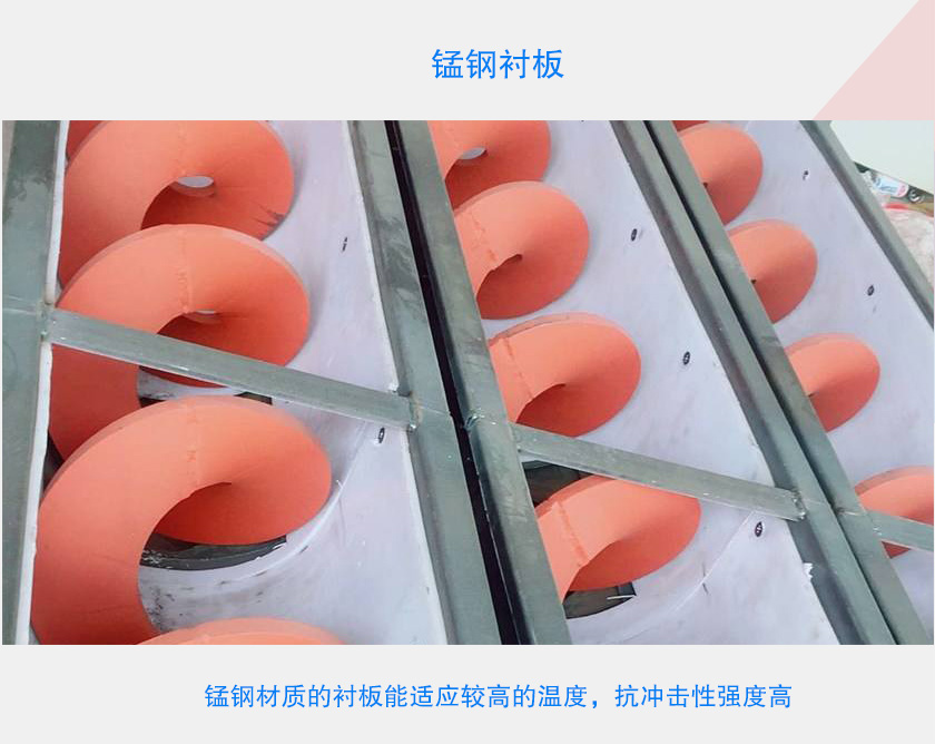 錳鋼材質(zhì)的襯板能適應(yīng)較高的溫度,抗沖擊性強(qiáng)度高,耐腐蝕性好,比較適合耐磨性大的物料。雖說錳鋼成本相比其他兩種來說更高一些,但實(shí)用性也相對較高。