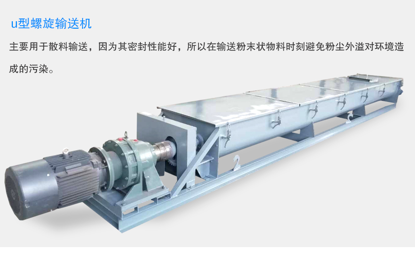 u型螺旋輸送機主要用于散料輸送,因為其密封性能好,所以在輸送粉末狀物料時刻避免粉塵外溢對環(huán)境造成的污染。
